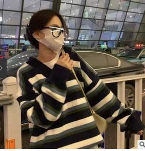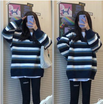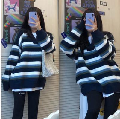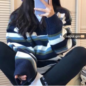 áo xanh sọc trắng áo len phiên bản hàn quốc