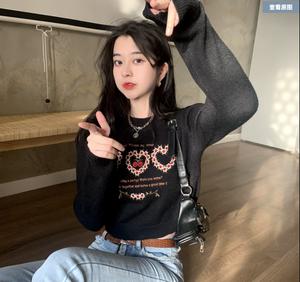 áo len tim xinh xắn phiên bản thân ngắn một kích cỡ