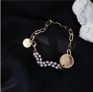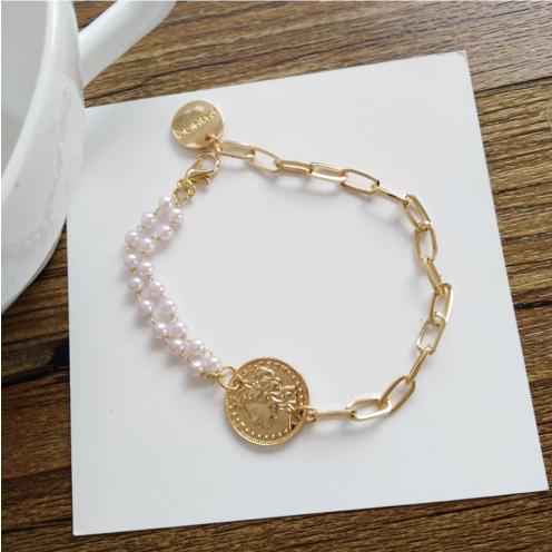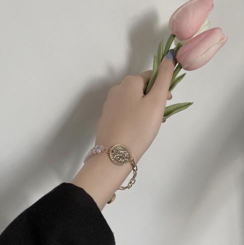 Thiết kế thời trang đơn giản trong vòng tay gió sáng tạo không đối xứng gió lạnh vòng tay đầu người vòng tay ngọc trai 1205