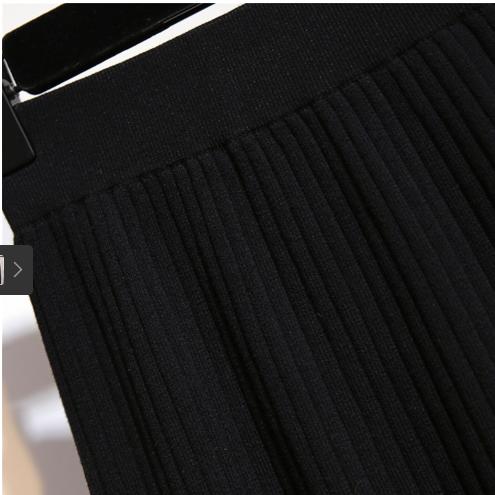 Giảm tuổi dao động giảm tuổi v-cổ áo kim cương năm 2021 mùa thu mới đan mỏng áo nịt đan lưng cao váy xếp ly phụ nữ