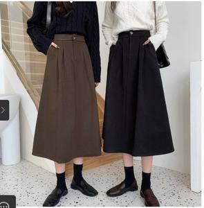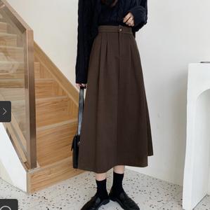 Váy len rời nữ thu đông 2021 phong cách hàn quốc kiểu dáng dụng cụ cạp cao lưng thun cô gái váy chữ A dài trung