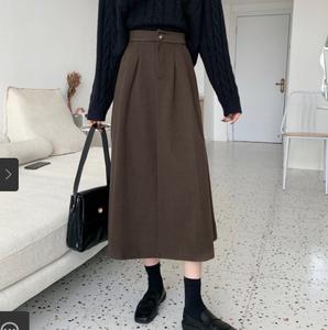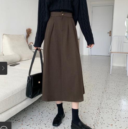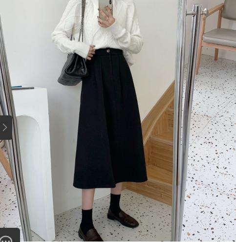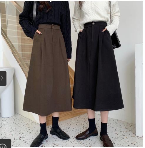 • Váy len rời nữ thu đông 2021 phong cách hàn quốc kiểu dáng dụng cụ cạp cao lưng thun cô gái váy chữ A dài trung