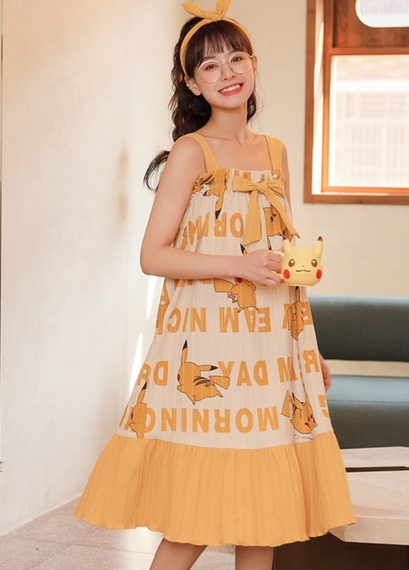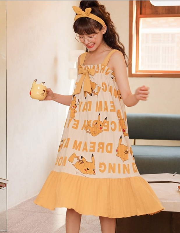 Thông tin Váy ngủ ngắn tay hàn quốc kiểu hở vai Pikachu