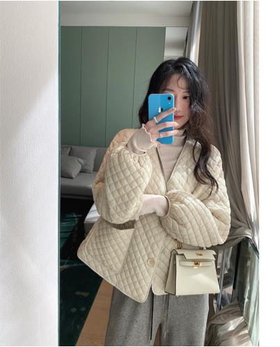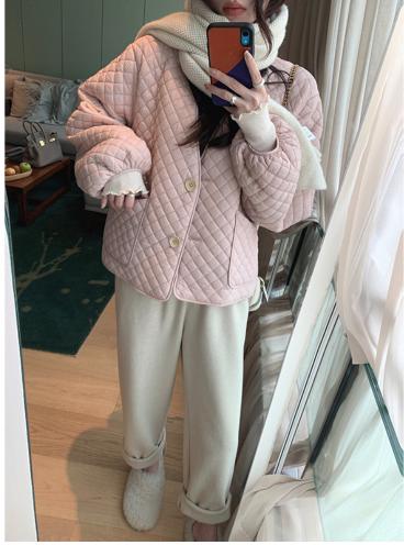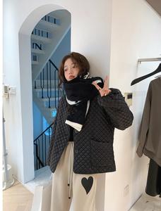 ÁO khoác trần bông hình thoi phiên bản rộng dãi với cổ chữ V