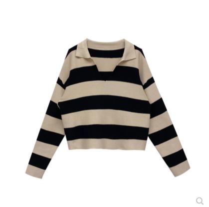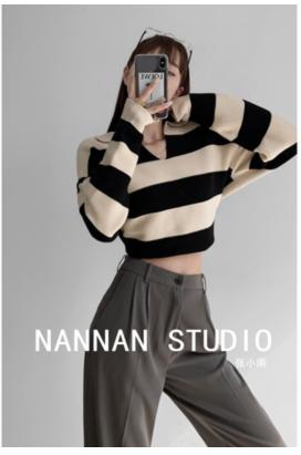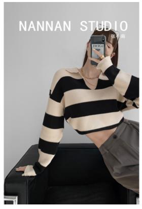 • Tên sản phẩm :Zhang Xiaonan NANNAN áo len sọc rộng rãi lười biếng của phụ nữ áo len dài tay giản dị mùa thu và mùa đông POLO cổ áo trên